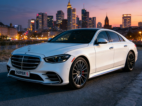 The rental price includes the vehicle, driver, fuel, and full insurance coverage. Additional charges may apply for tolls (Salik) or extended waiting times.
